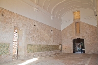 El claustre interior constava d'una terrassa quadrada per la part interior i uns passadís gegant per l'exterior. La terrassa interior era molt maca. Hi havia una font que brollava per la copa d'un petit arbust, uns arbres molt macos i unes voreres de gespa. Era com el paradís, més o menys. Després de que es presentés la guia, la Marta, vam començar a visitar sales. La primera era on antigament hi havia el menjador, on els monjos menjaven. Menjaven callats mentre escoltaven a un orador, que llegia. La sala era gran; amb parets de pedra per la part de sota i una paret blanca, restaurdada, per la part de dalt.